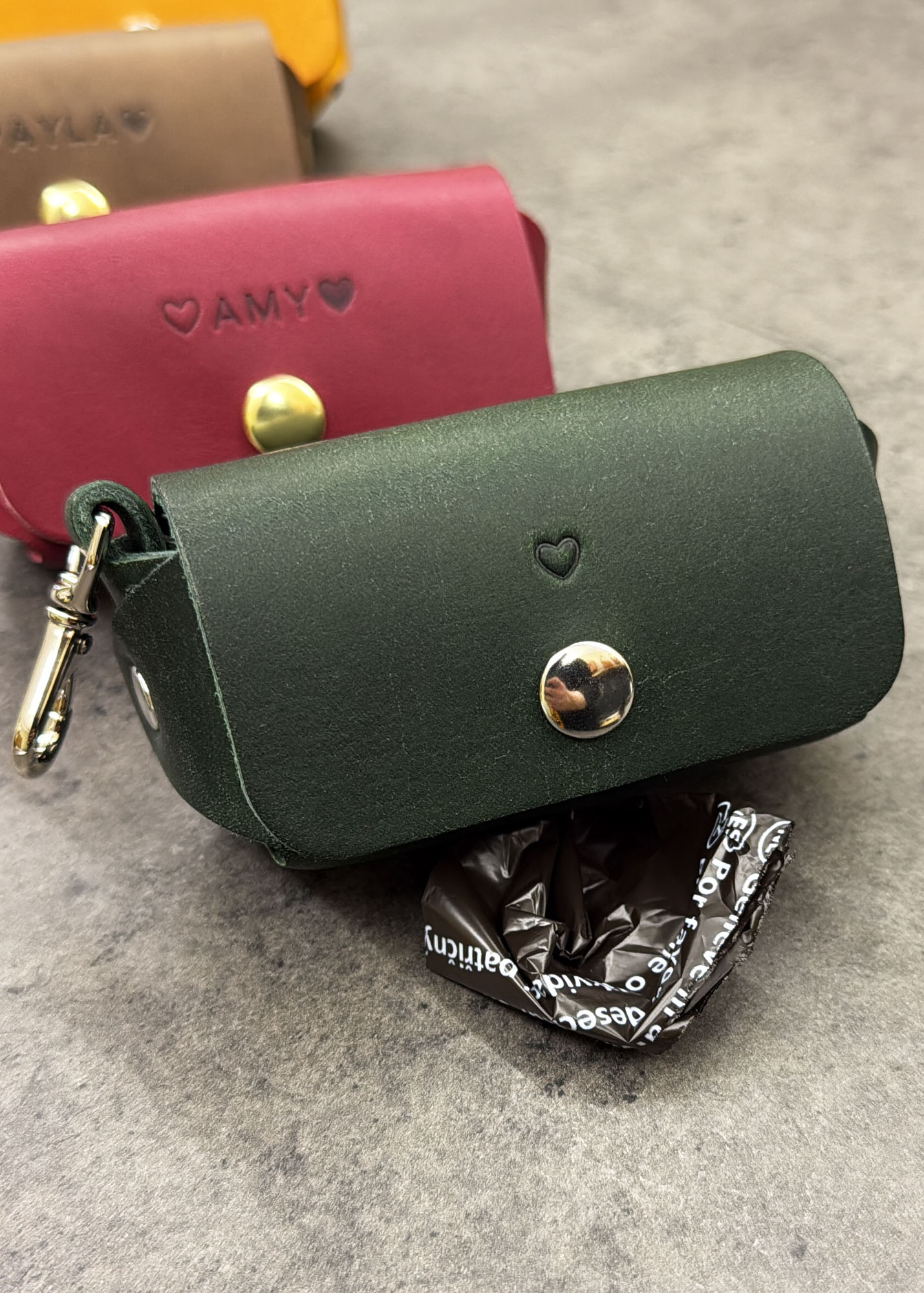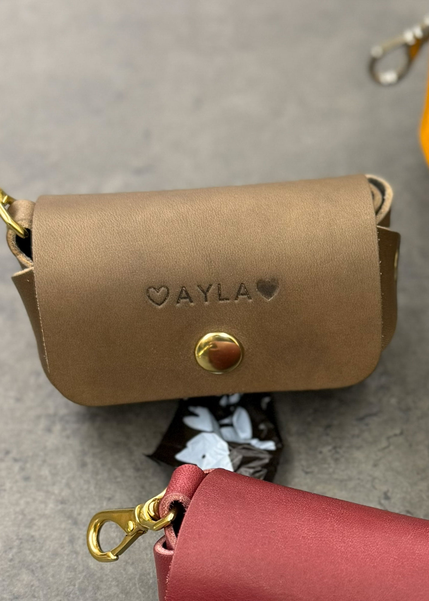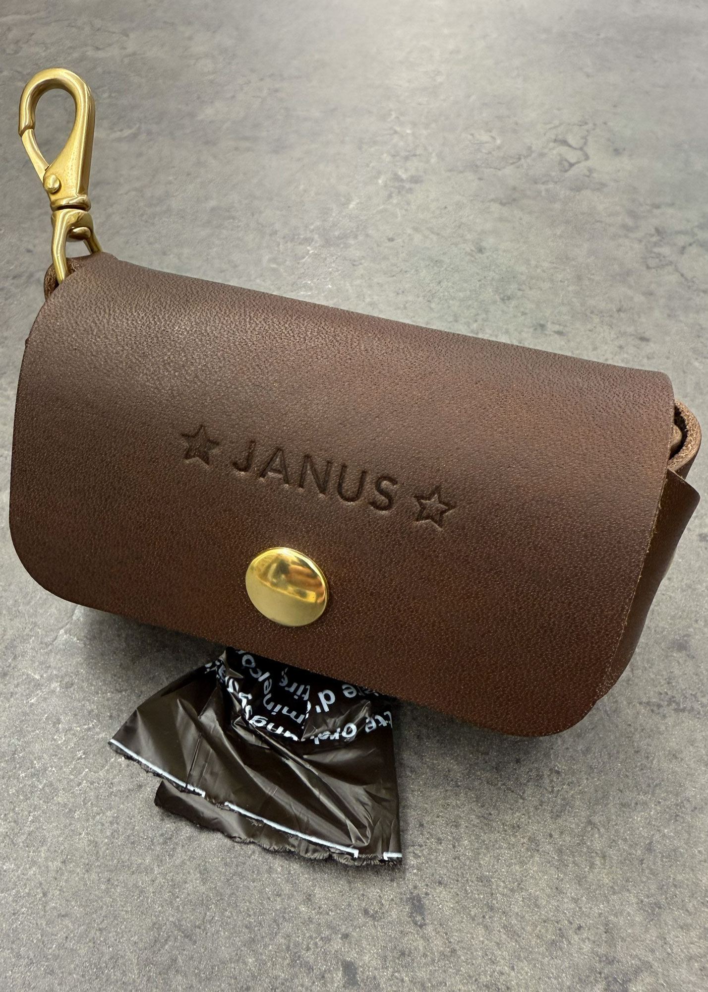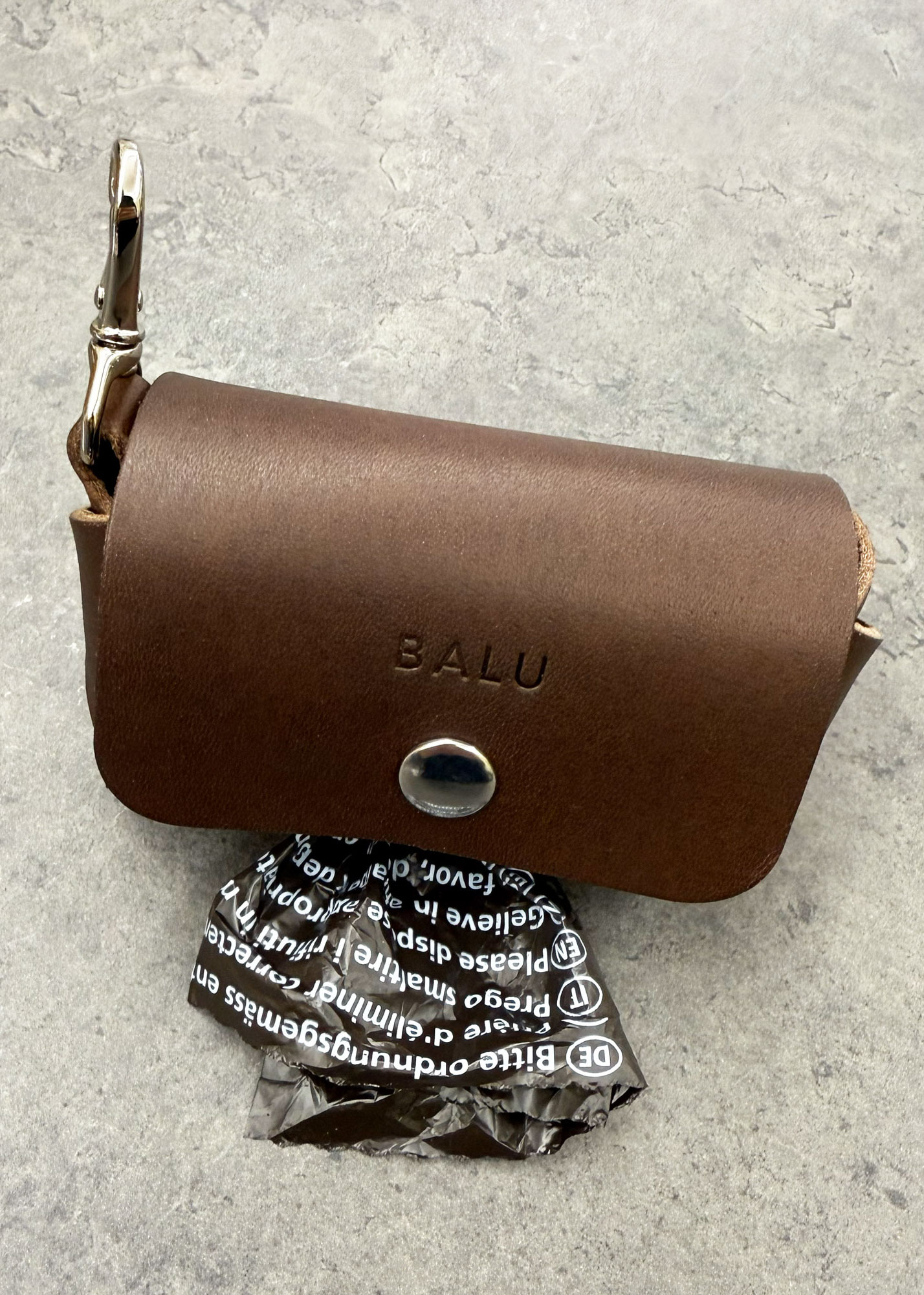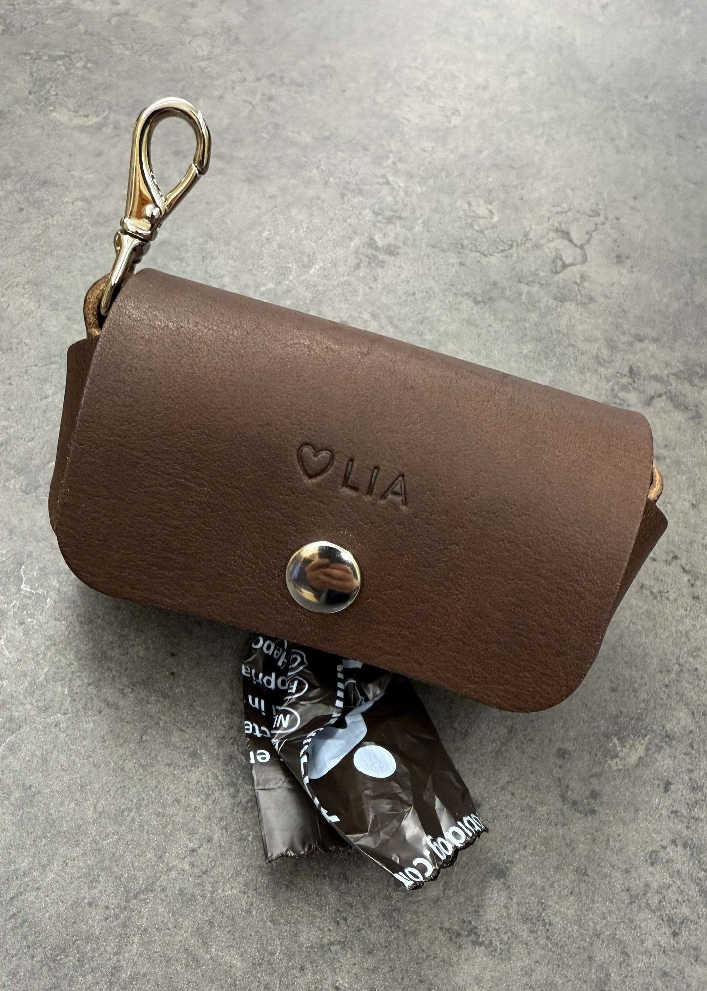 Der Kotbeutelspender ist ein stilvolles Accessoire für alle Hundebesitzerinnen und Hundebesitzer. Der kleine Karabiner lässt sich an der Leine, am Gürtel oder an der Tasche befestigen. Im Spender ist eine ‚Mini-Roll‘ robidog Beutel (20 Stk.) enthalten. Dank dem praktischen Druckknopf können neue Rollen mühelos eingesetzt werden. Durch die Öffnung werden die Beutel herausgezupft und von der Rolle abgerissen. Bei einer Bestellung kannst Du die Namensprägung Deines Vierbeiners auswählen. Der Kotbeutelspender «Cucciola» aus pflanzlich gegerbtem Rindsleder aus Italien in minimalistischem Design wird von Hand in der Schweiz gefertigt.